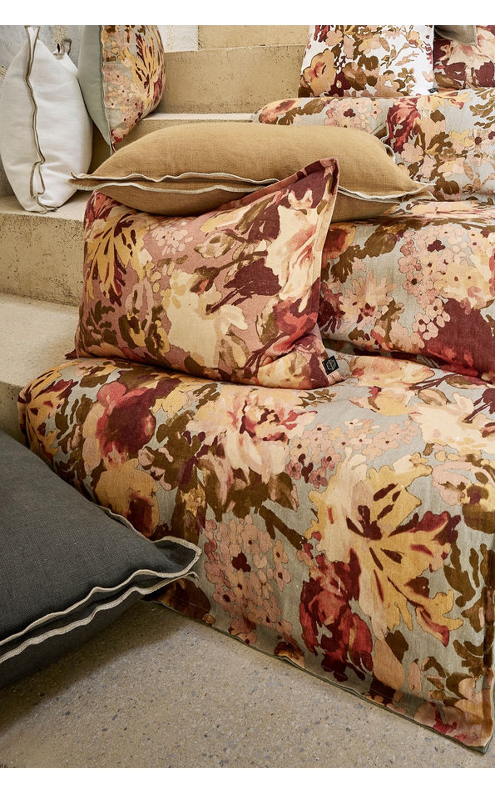 Déclinée en coussin et en édredon, la gamme Seoni permet de composer une ambiance chaleureuse et harmonieuse. Superposez les matières, jouez avec les volumes et créez un univers accueillant où le lin révèle toute sa noblesse.