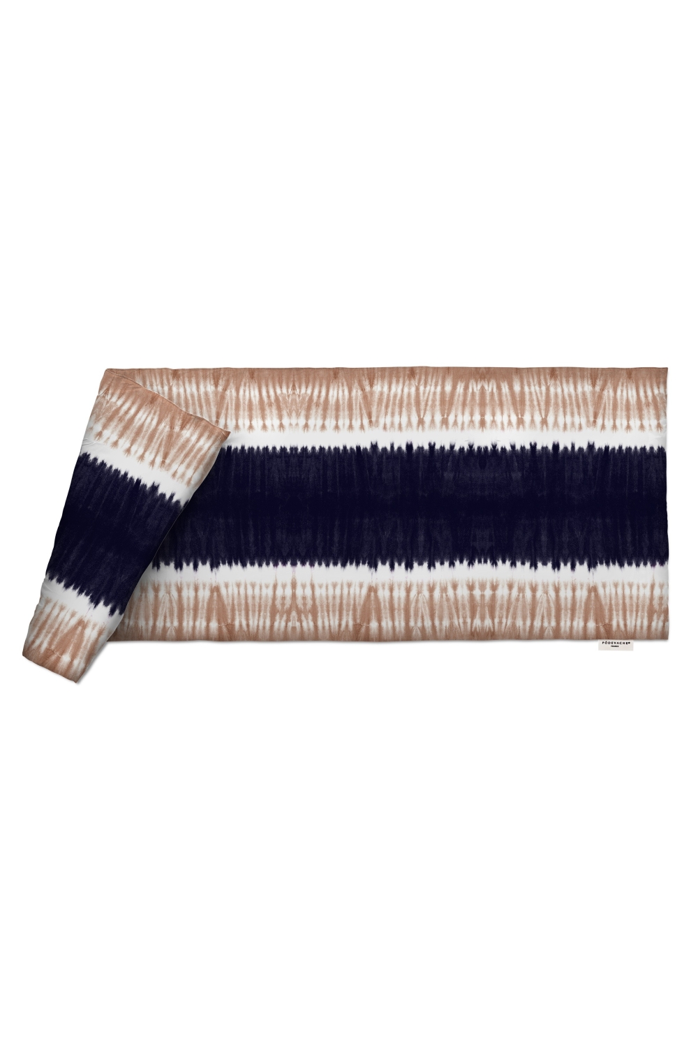 Matelas de bain de soleil de la marque Pôdevache. Collection Tie and Dye. Un mélange de bleu indigo et de tonalités de beige parfait embellir votre transat. Garniture incluse.
