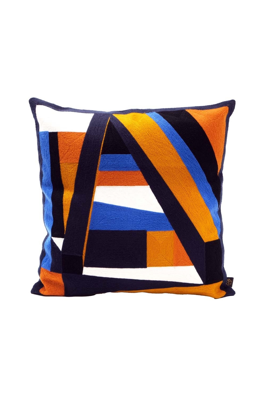 Coussin en coton brodé - Takayama 100% coton brodé - Motif géométrique