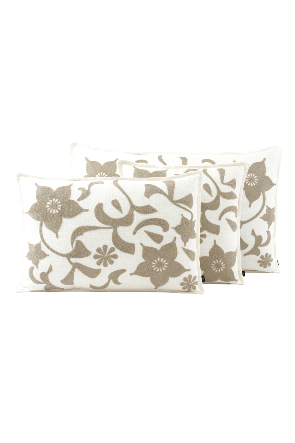 Les coussins de la collection CHIARA de chez HAOMY sont confectionnés en lin, sublimés par une broderie en coton délicate réalisée sur fond de lin.