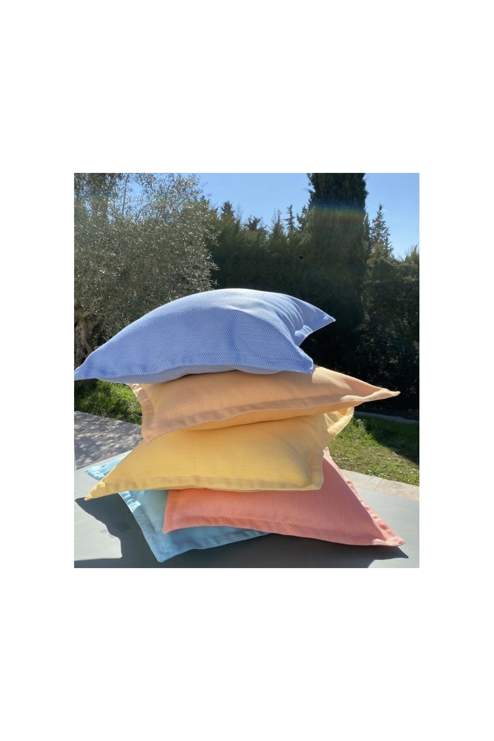 Vous cherchez des coussins d'extérieur au toucher soilleux, doux et moelleux comme des coussins d'intérieur ? Ambiances et Matières a sélectionné pour vous les coussins de la gamme Luxe Chevron de la marque Où est Marius ! En Jacquard 100% tissé en France, traité anti-UV et déperlant, ces coussins apporteront une note chic et cosy à votre jardin, terrasse ou balcon !