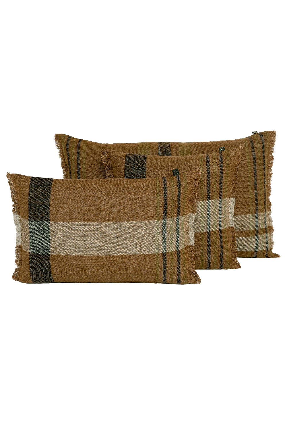 Le coussin AALBORG arbore un motif à carreaux aux nuances chaudes et naturelles, idéal pour ajouter une touche de sophistication à votre