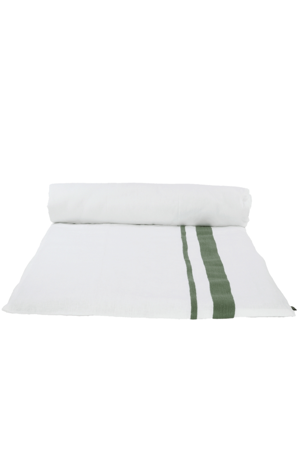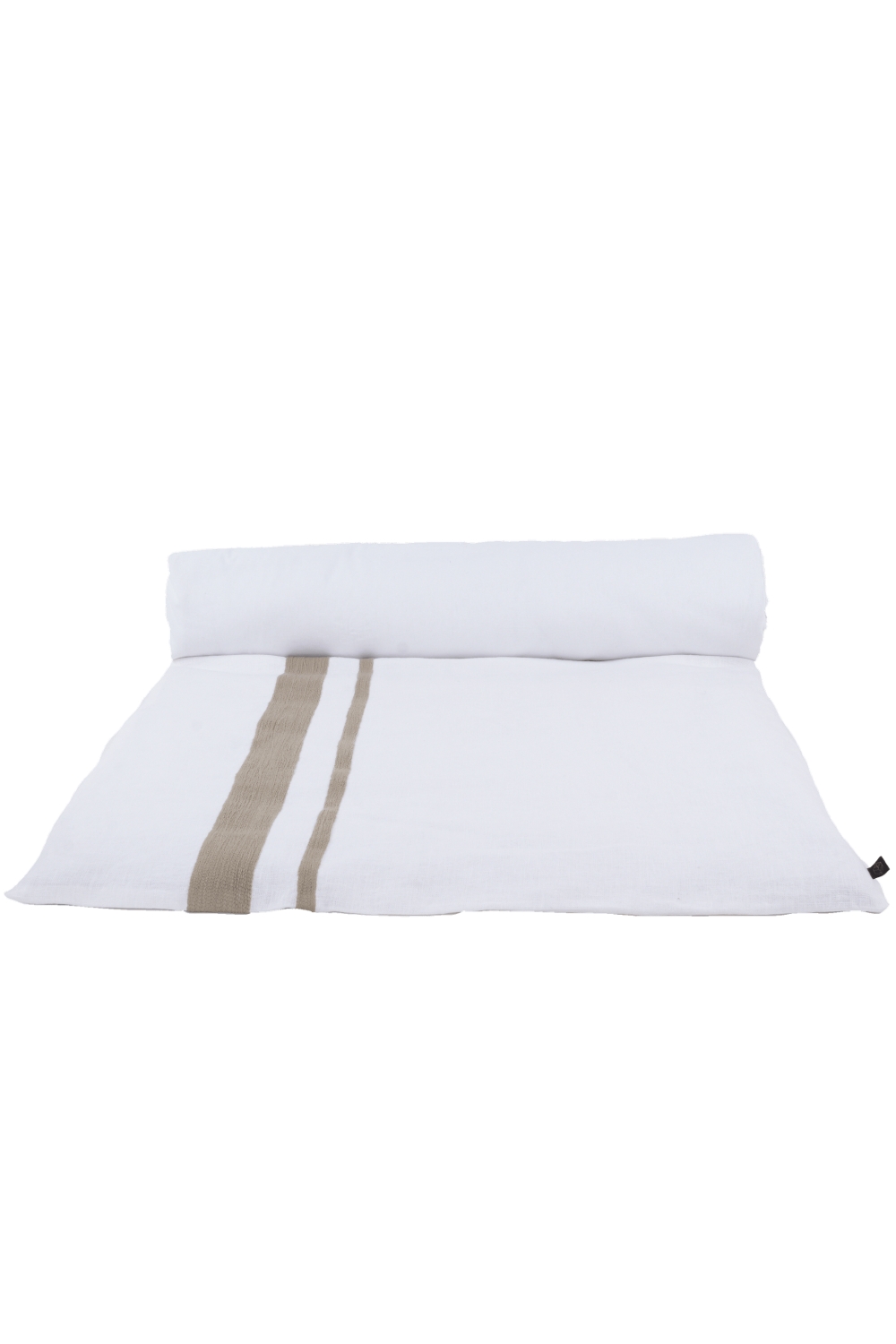 L'édredon "Malaga" de dimensions 85x200 cm, fait à 100% de lin avec des lignes brodées en coton, serait un choix élégant et confortable pour votre literie.