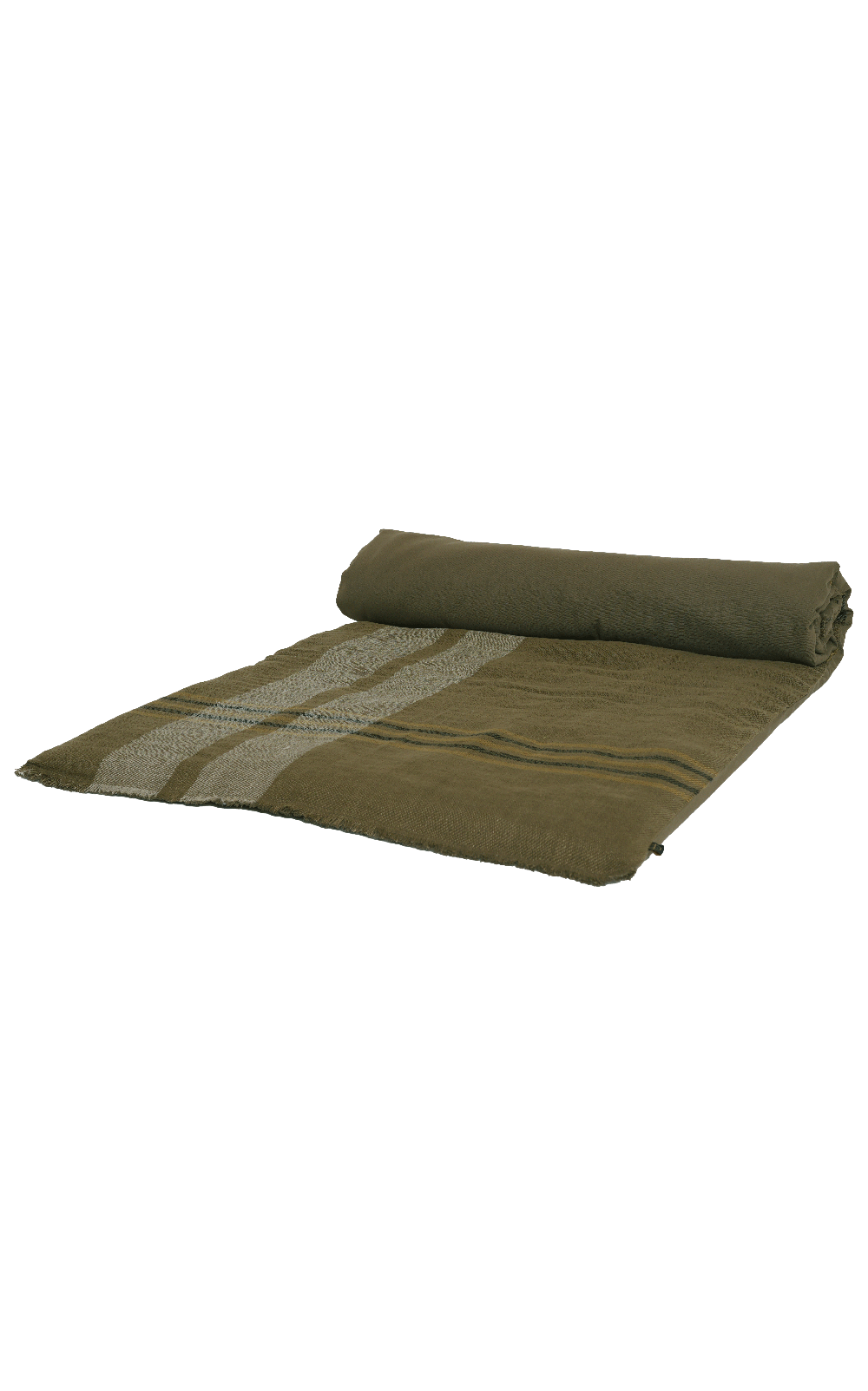 La housse d'édredon AALBORG avec ses bandes horizontales et verticales dans des teintes riches de gold, kaki, vert bleuté tranforme n'importe quelle pièce en un espace acceuillant et affiné.