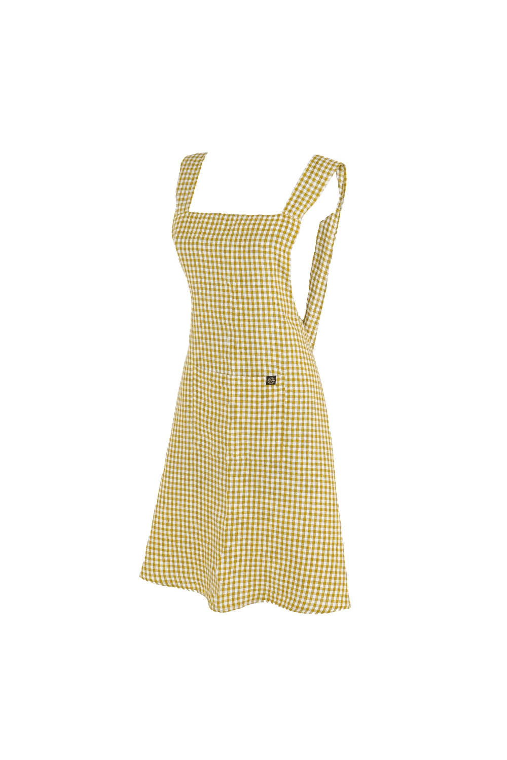 Tablier japonais vichy en lin et coton - Piana II 52% lin 48% coton - Petits carreaux