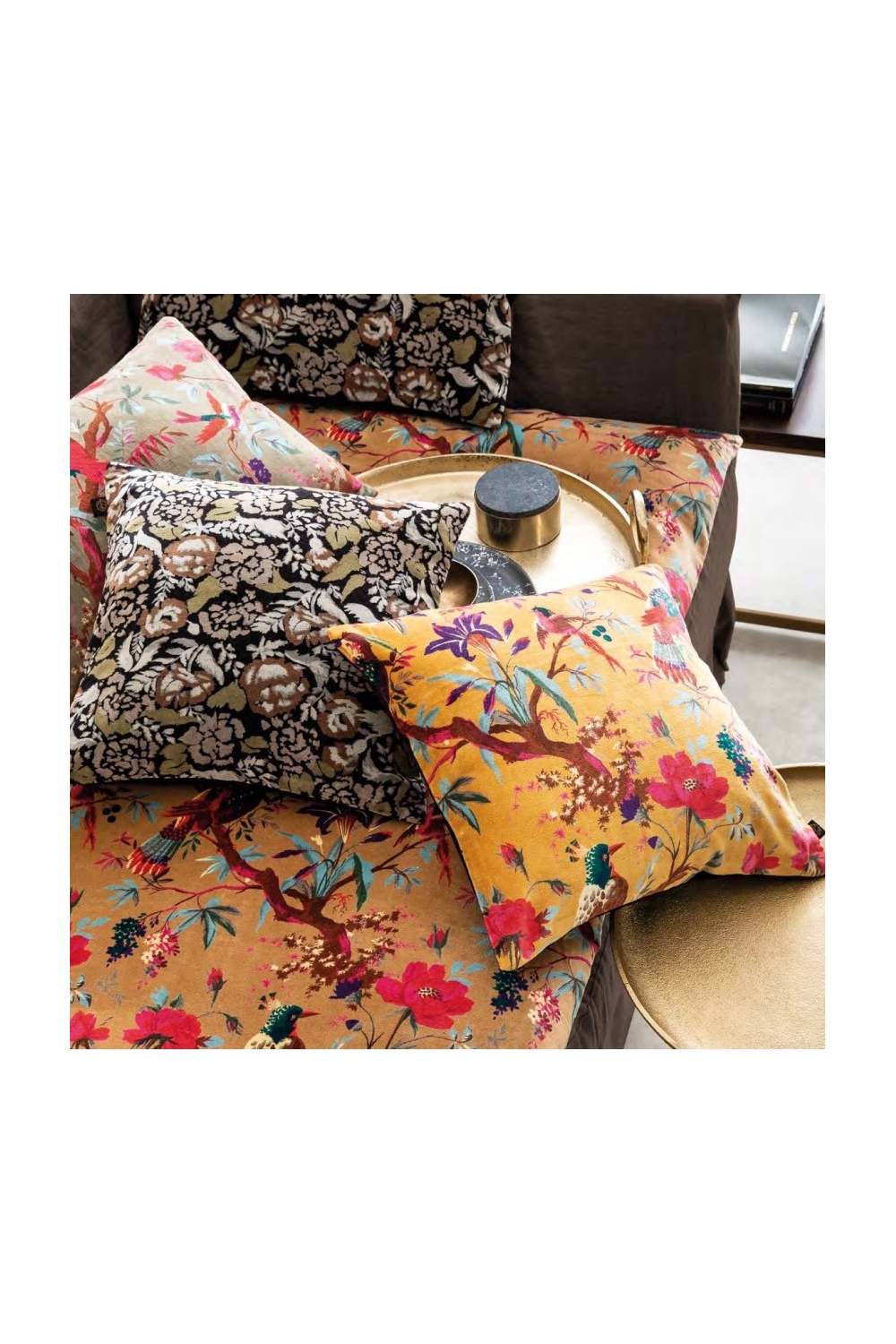 Vous avez aimé la collection Coron ? Alors vous allez adorer la collection en velours imprimé 100% coton Mharas ! Avec son imprimé floral qui semble tout droit sorti de l'imagination d'un peintre fauve, la collection Mharas apportera une touche végétale originale à votre intérieur !