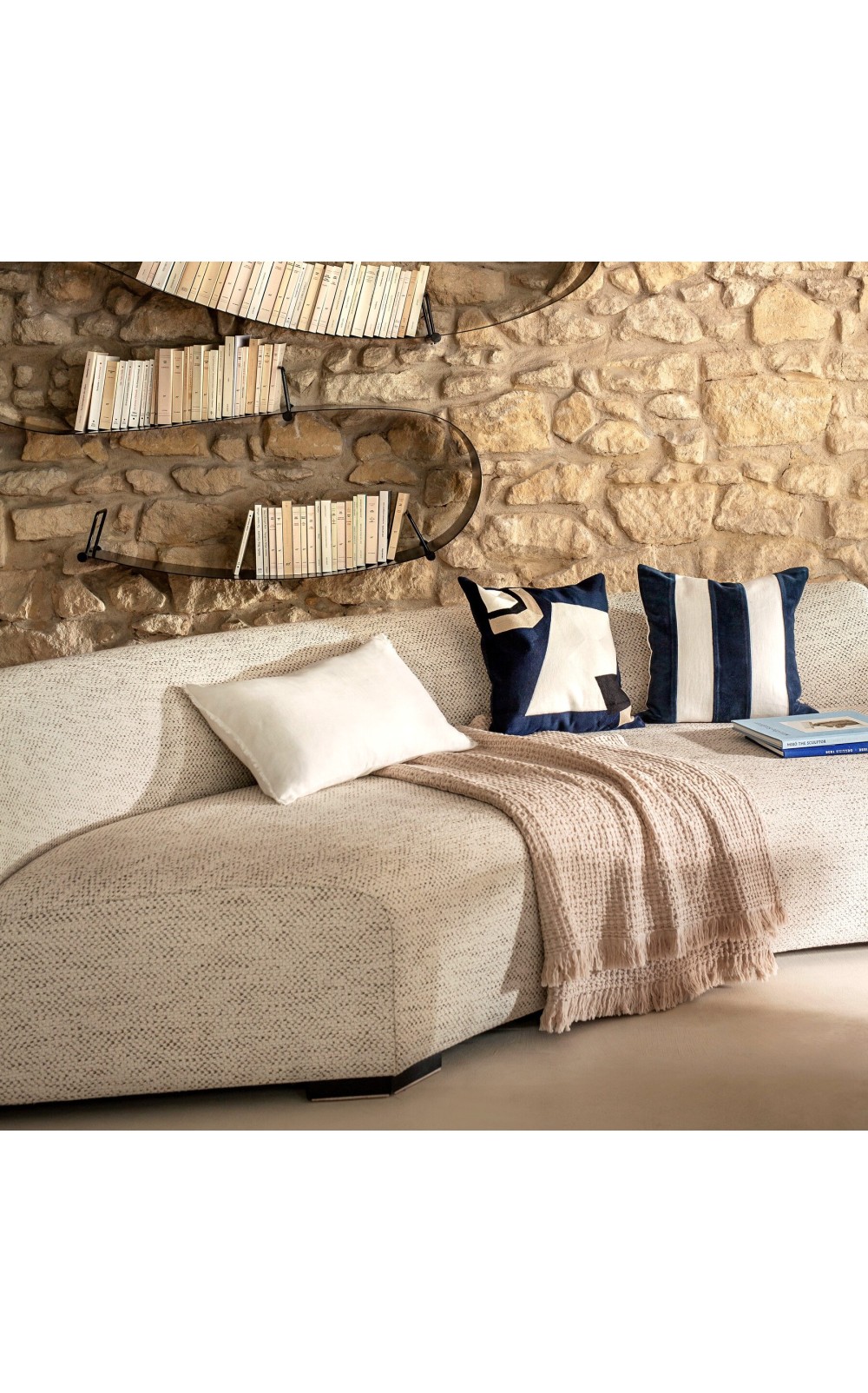 Ces larges bandes apportent du rythme et du caractère à votre décoration, tout en conservant une élégance naturelle grâce à l'association du velours de coton et du lin lavé.