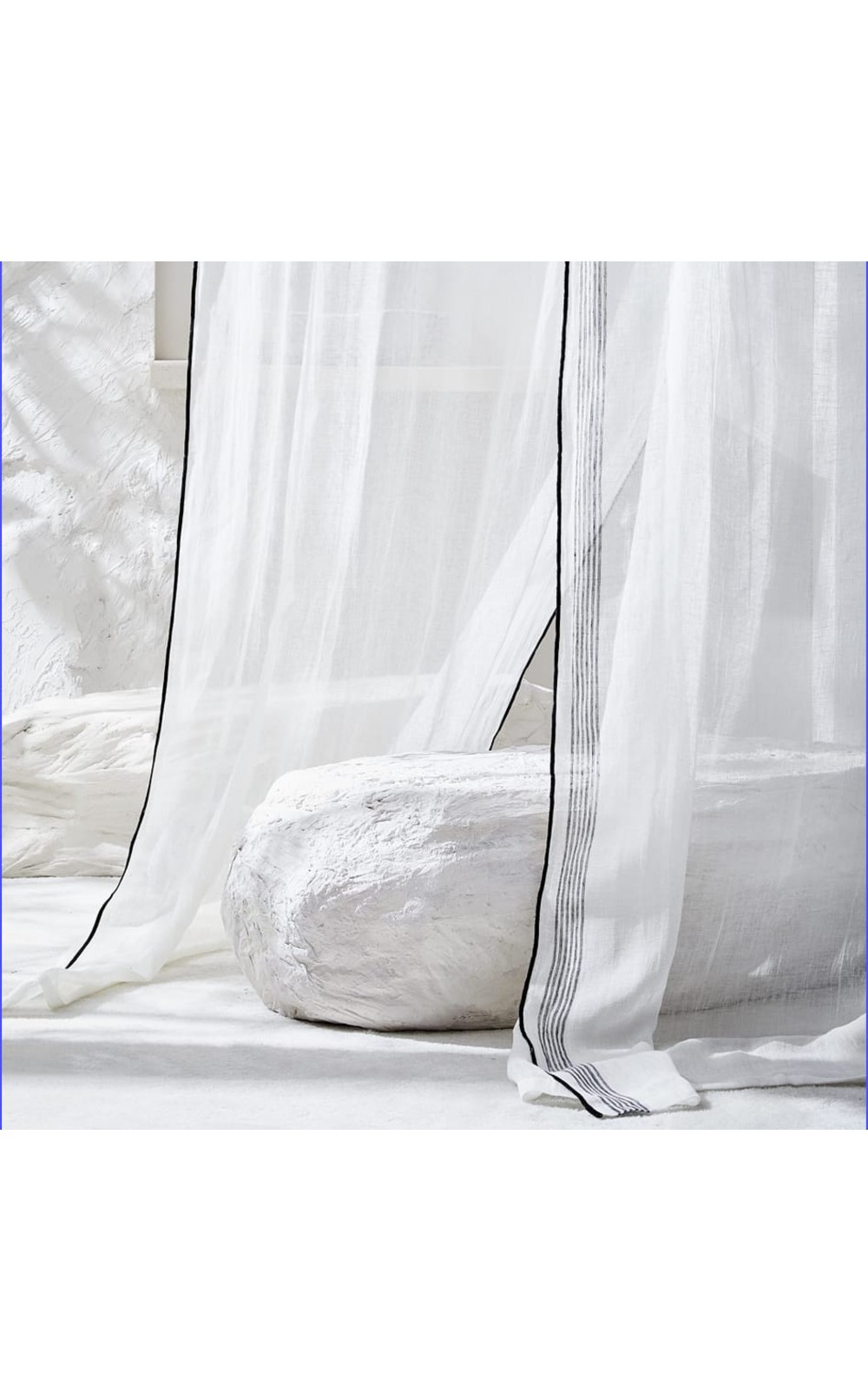 Le tissu semi-transparent 100% lin en teinte blanche crée une ambiance lumineuse et épurée, tout en laissant la lumière pénétrer délicatement. Il est également disponible en naturel, pour une option plus chaleureuse et apaisante.