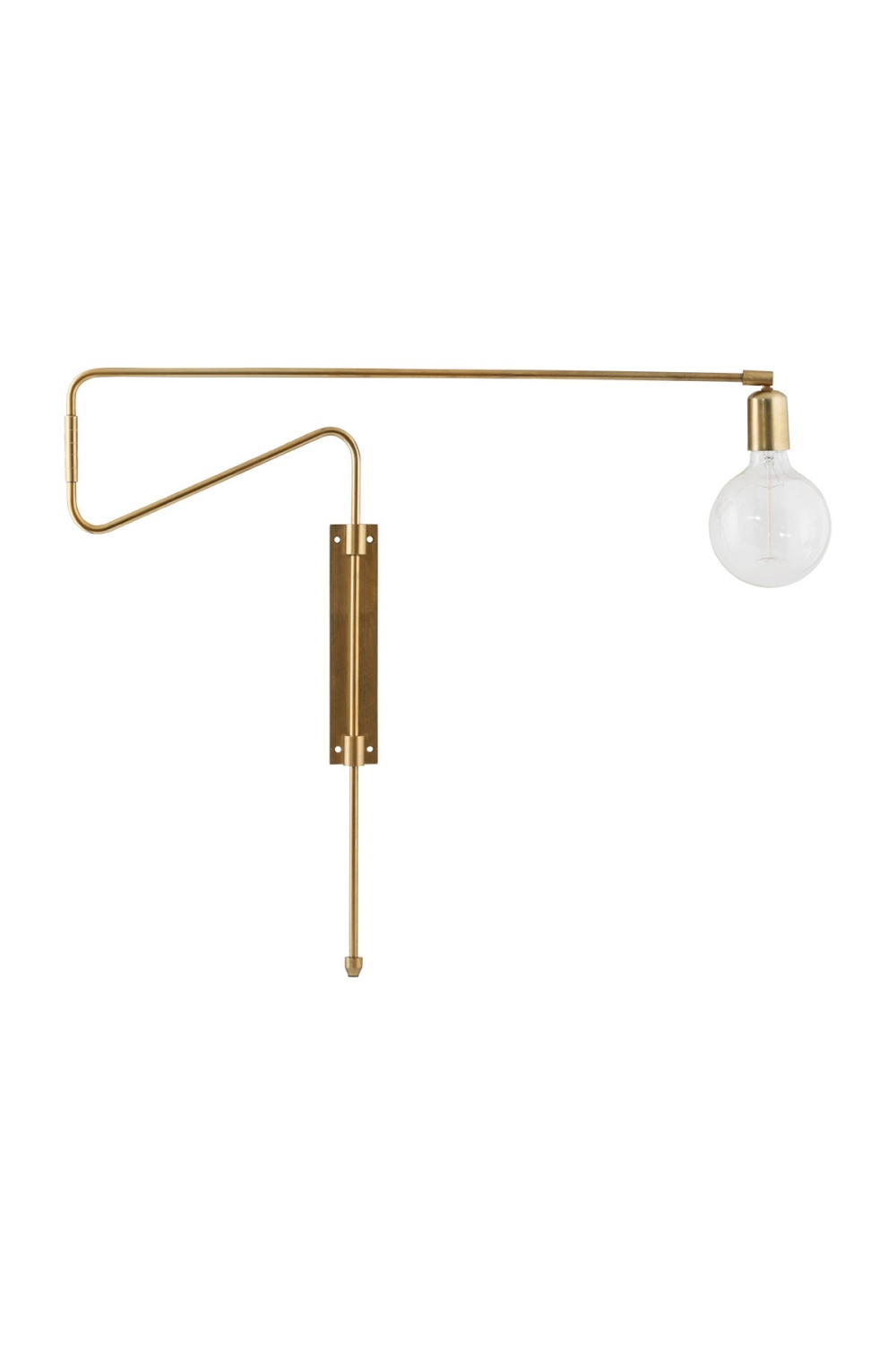 Ici, l'applique murale Swing finition laiton est dotée d'un bras et d'une douille articulés, d'un cable longueur 2m20, d'un interrupteur et d'une prise murale! Nul besoin donc d'une sortie électrique murale, vous pouvez placer cette belle applique où bon vous semble! En lampe de chevet, lampe de bureau ou en luminaire d'appoint dans le salon, l'applique Swing a l'avantage de ne pas emcombrer vos meubles et sols.... Une très belle alternative donc aux lumainaires sur pied!!!