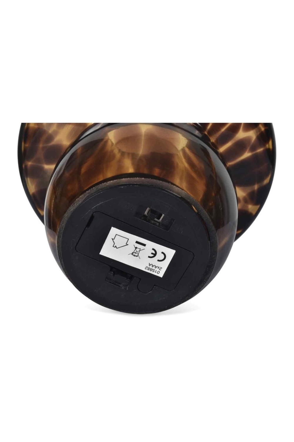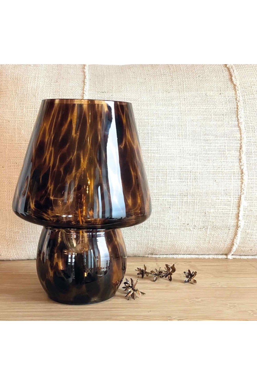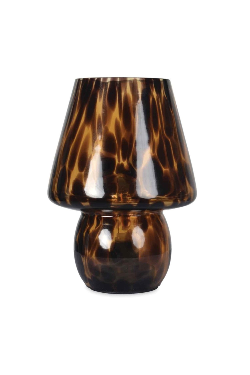 Petite lampe décorative en verre léopard. Un petit point de lumière se pose comme une petite bougie, car elle n'a pas de câble, c'est un petit accessoire lumineux. Interrupteur sous la lampe. Vendu avec ampoule LED, piles non incluses.