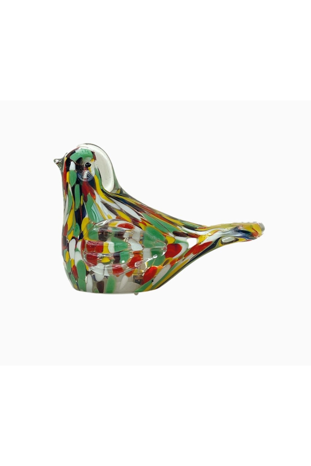 Petite lampe décorative en verre en formed oiseau moucheté vert.