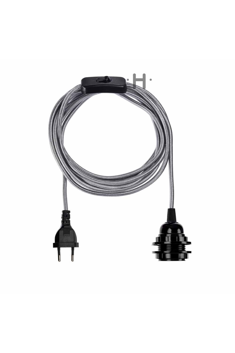 Ici la baladeuse Bala Bala Métal, avec son câble textile argenté et sa douille dotée de 2 bagues permettant d'y adapter cage, abat-jour et autres accessoires, va booster et illuminer votre déco en un tour de main!!!