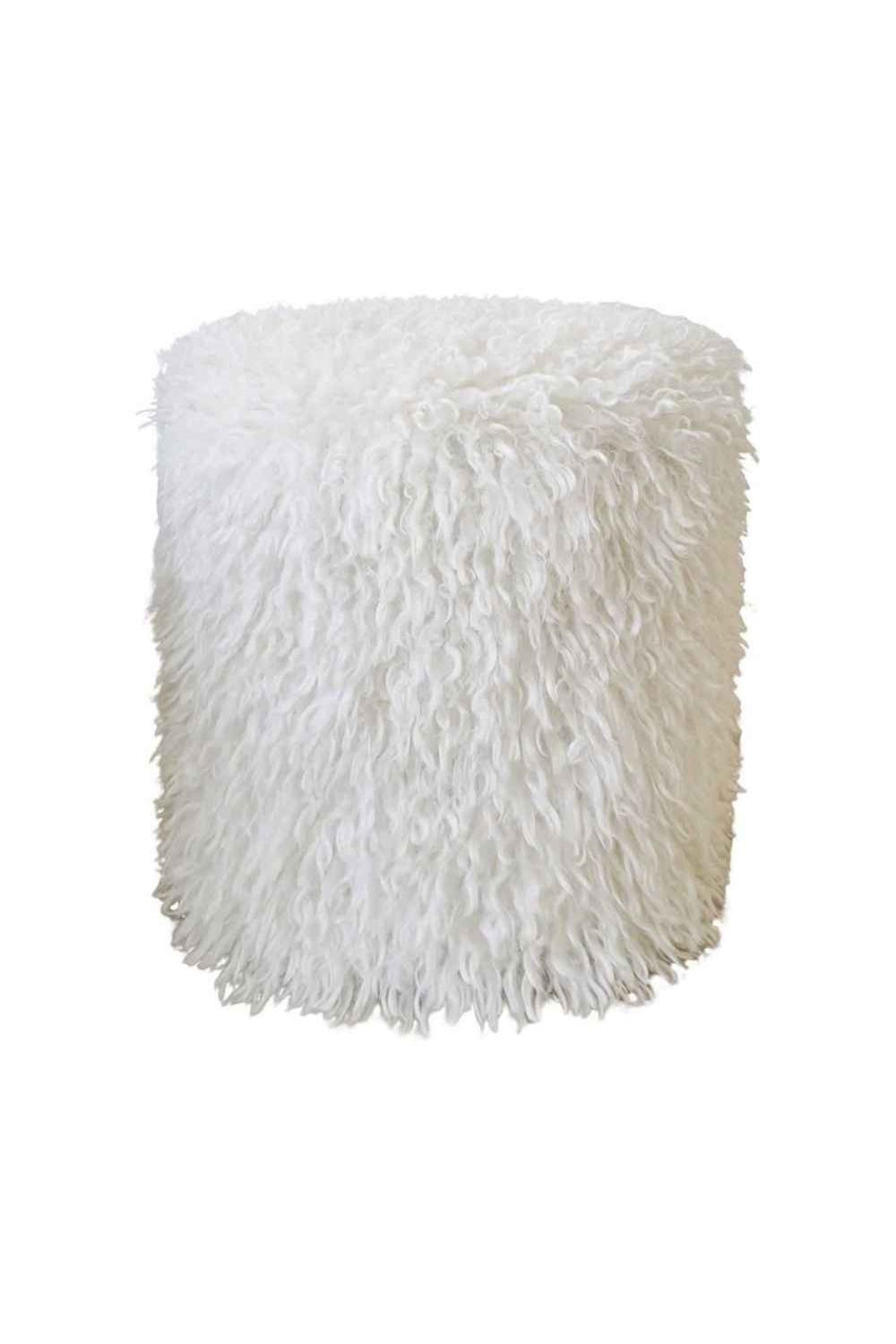 TABOURET OCTAVE ECRU FAUSSE FOURRURE D 35 H35CM