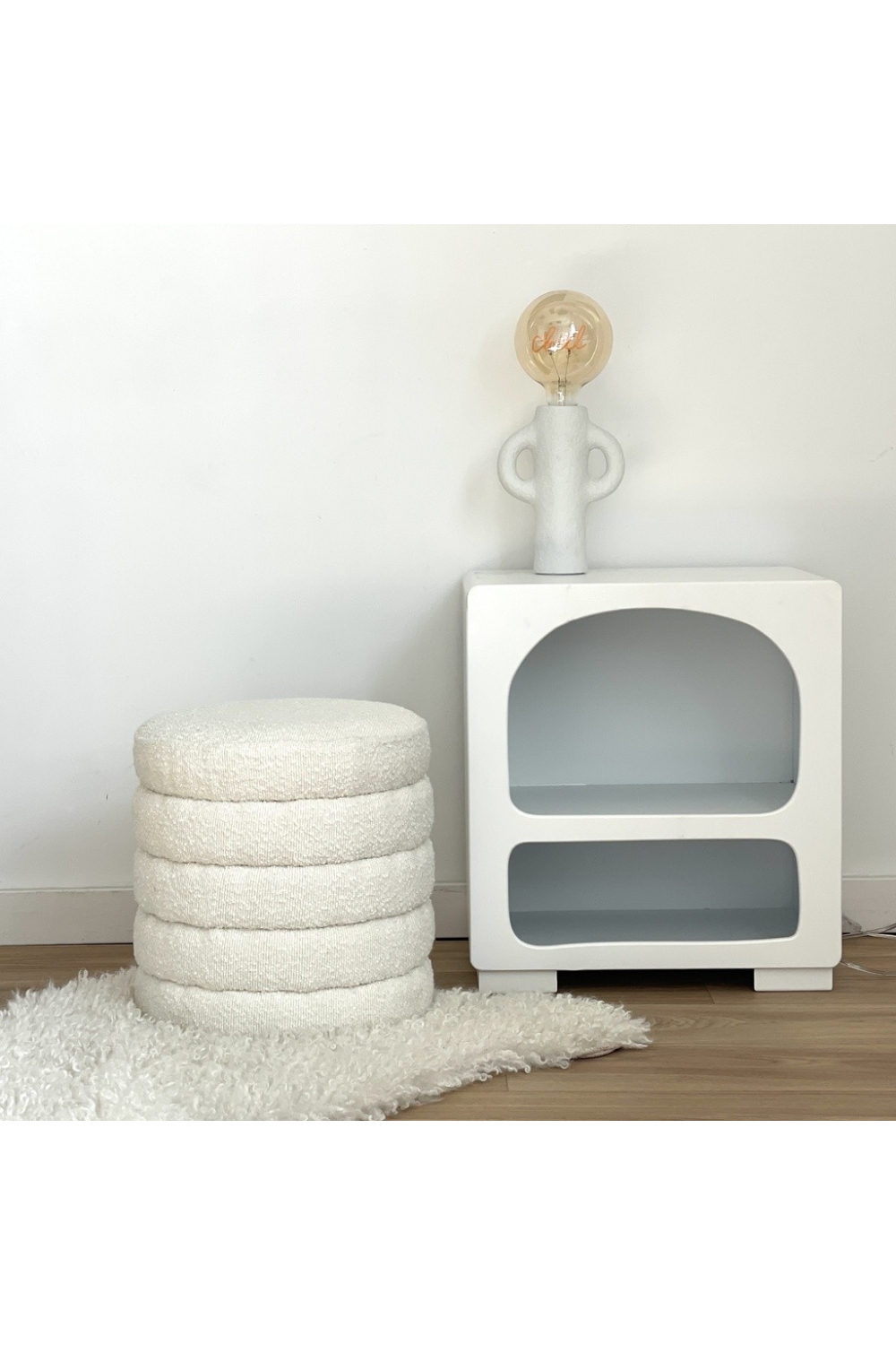 TABOURET OCTAVE ECRU FAUSSE FOURRURE D 35 H35CM