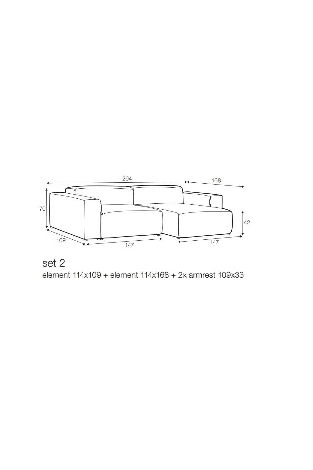 Dans la configuration présentée, le canapé comprend deux éléments :