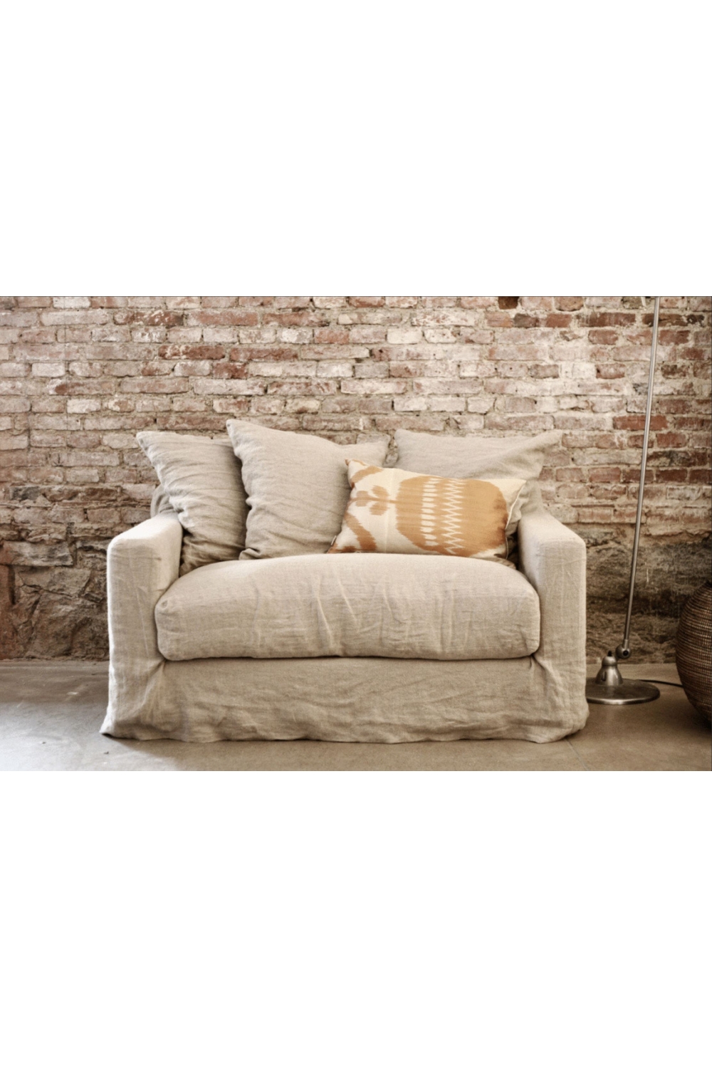 Entièrement déhoussable, il est ici présenté dans un tissu 100 % lin, appelé sweet Lin.
