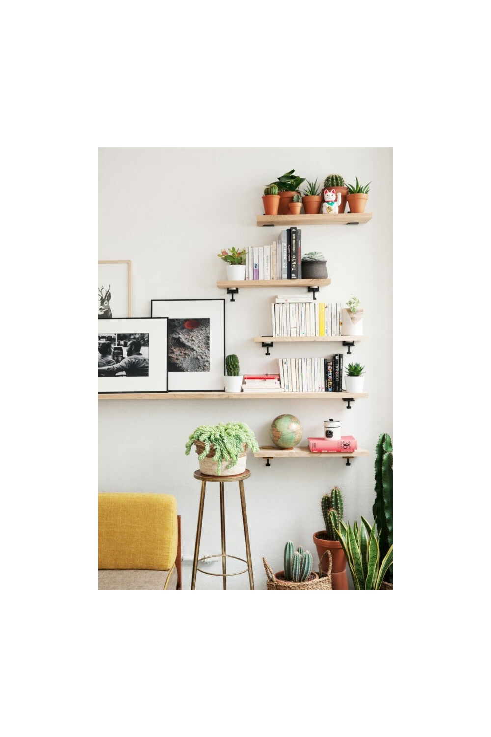 Avec la bracket Tiptoe, il est possible de créer votre propre mobilier modulable, de réaliser une simple étagère à côte de votre lit jusqu'au meuble beaucoup plus complexe en alliant les pieds Tiptoe de différentes hauteurs.